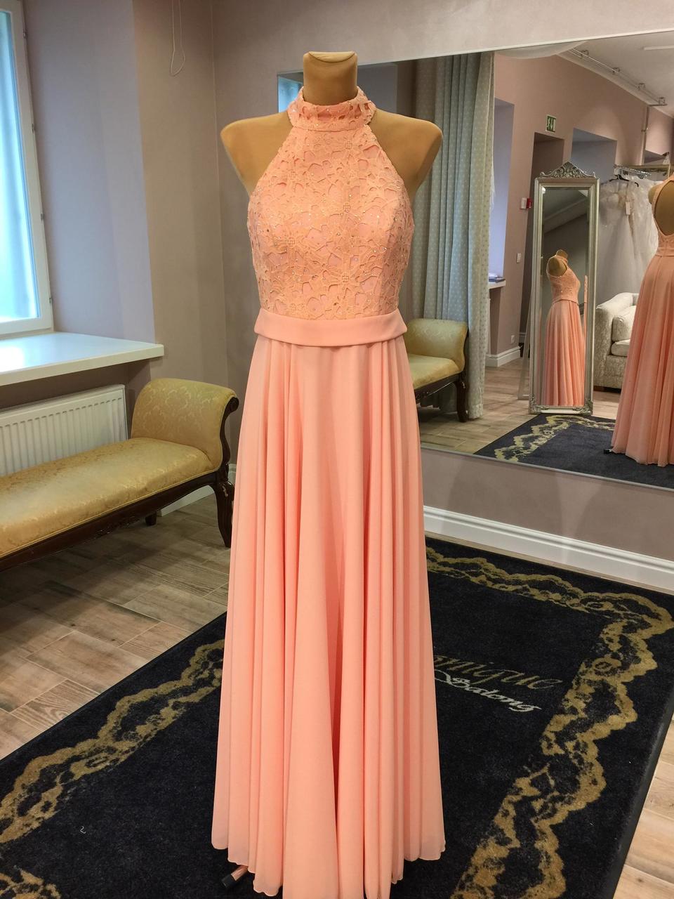 Pikk šifoonist kleit, korsett kaetud pitsiga, mida kaunistavd kivikesed. Seeliku pikkus 120 cm.