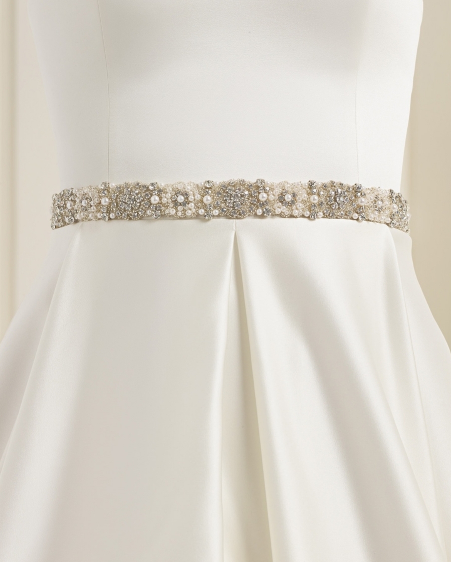 Elegantne satiinist vöö, kaunistatud dekoratiivkividega.