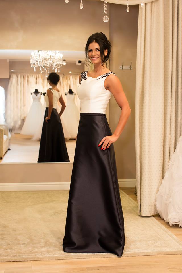 Mark Lesley - satiinist tumesinine/valge tasuktega kleit.