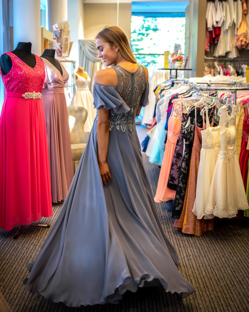 Hall sifoonist kleit. Käsivarsi kattev kangas on eemaldatav trukkidega.