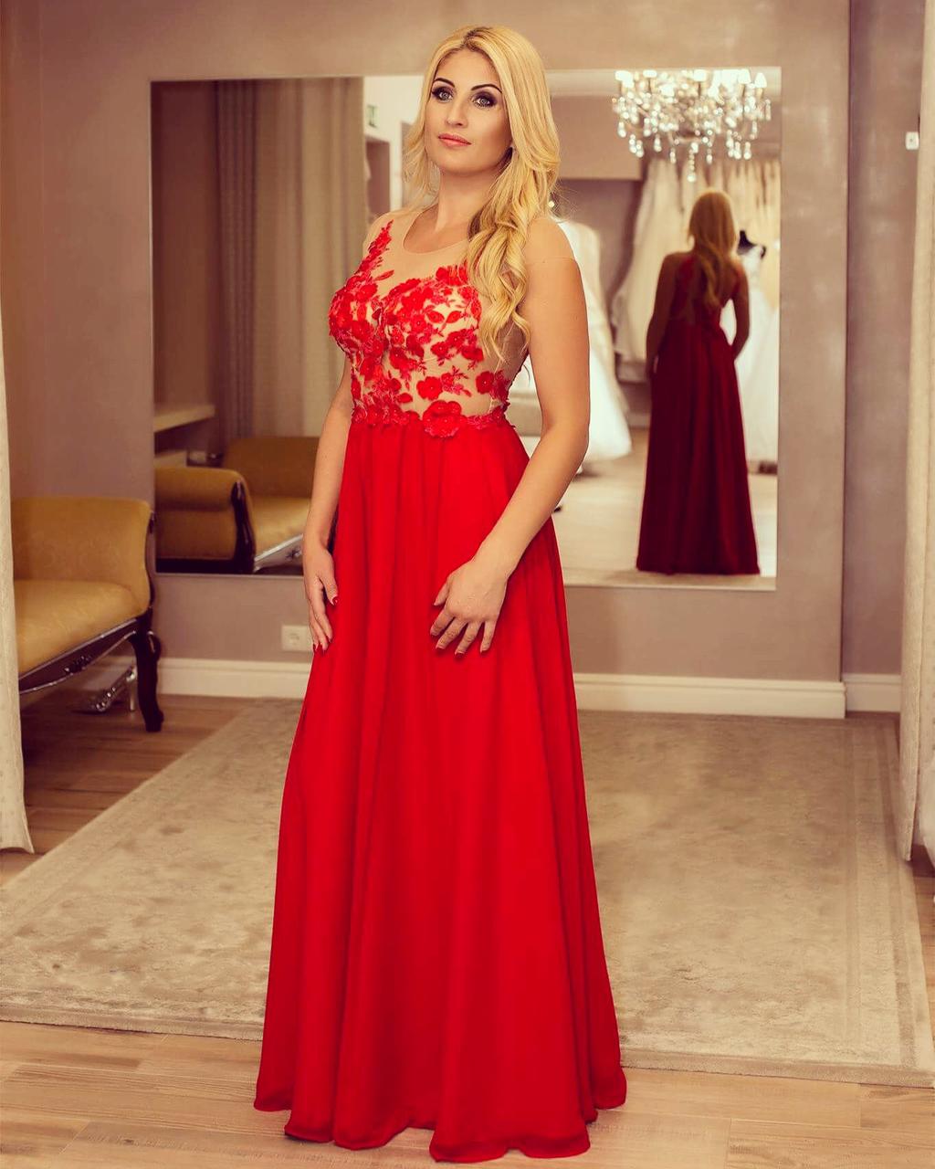 Sifoonist kleit, korsett tagant reguleeritav paeltega. Korsettil 3 D lilled. Salongis veel sinist ja musta värvi.