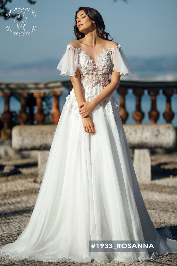 Pruutkleit Rosanna on uus, kaasaegne ja uskumatult naiselik kleit. Läbipaistval võrgukesel on kaunistuseks arvukad õie pitsielemendid, mis tekitavad vöökoha ja dekoltee rõhuasetusi. Õrnad tiib-varrukad ja mitmekihiline õhk šifooni vaheline seelik võimaldab luua rafineeritud pruudi pildi.